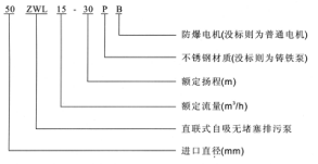 二、ZW型直聯式自吸排污泵型號意義: